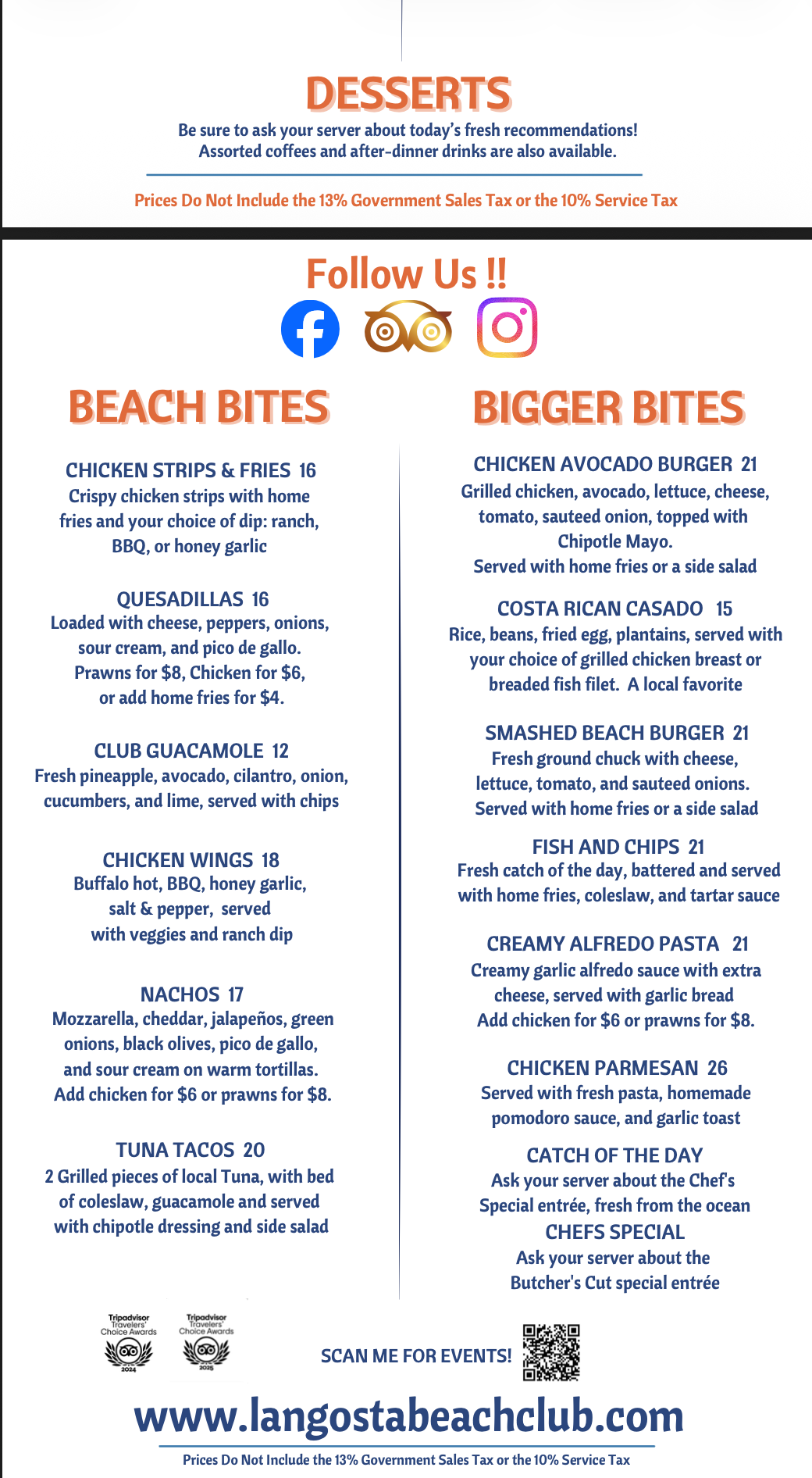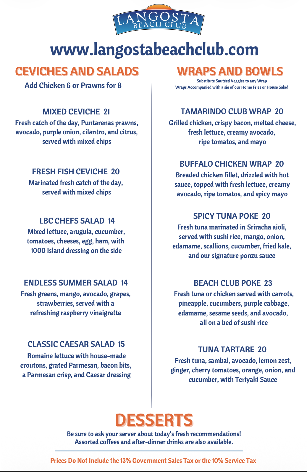 LANGOSTA BEACH CLUB - MENUS